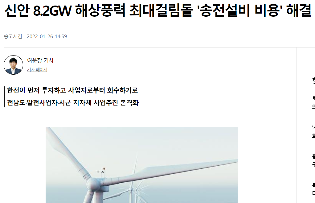 거기다 이 전남 신안의 해상풍력 발전단지 조성사업은