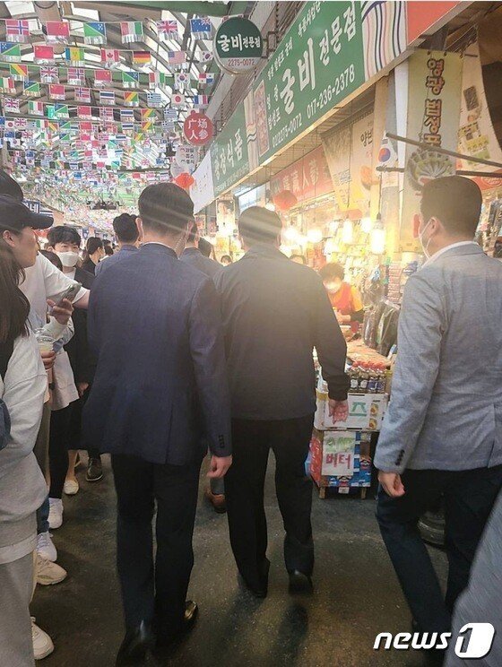 윤석열 대통령이 2022년 5월14일 오늘 광장 시장에 방문했습니다.