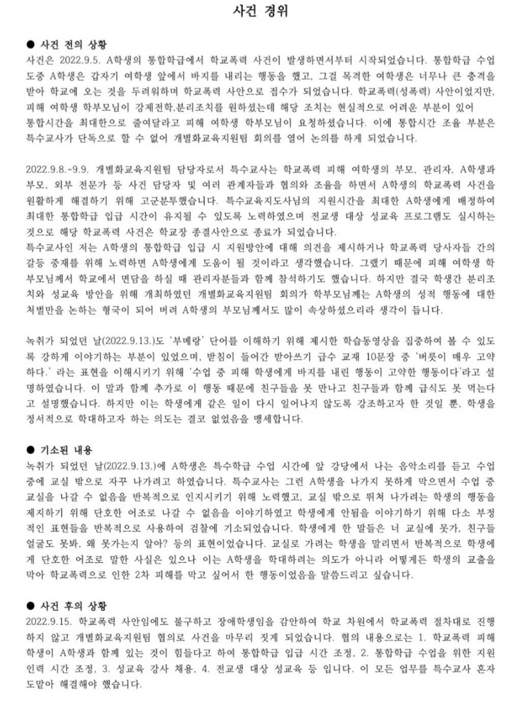 이 사건에 대해 교사가 작성한듯 보이는 아주 자세한 사건경위서가 공개되어 소개합니다.