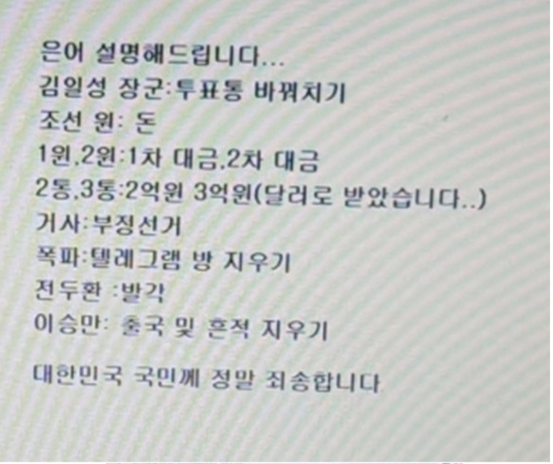 부정선거 내부 폭로글이라고 SNS에 퍼지는 이미지
